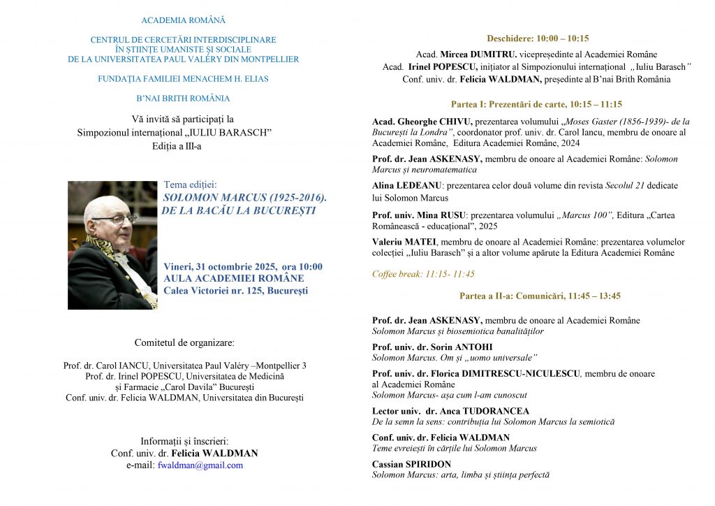 SIMPOZIONUL INTERNAȚIONAL ”IULIU BARASCH” EDIȚIA A III